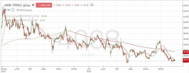 سهم "ساكو" يحاول الخروج من النطاق العرضي, اليوم الأحد 28 ديسمبر 2025 01:17 مساءً