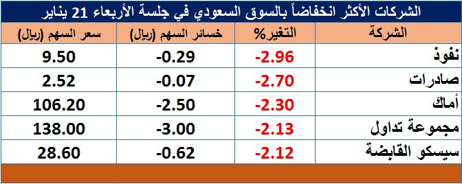 شركات التأمين تهيمن على مكاسب السوق السعودي بجلسة الأربعاء, اليوم الأربعاء 21 يناير 2026 03:38 مساءً