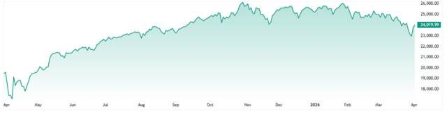 وخلال الفترة الأخيرة، شهد المؤشر اختراقًا لمستوى دعم النطاق العرضي، قبل أن يعاود الارتداد وإعادة اختبار هذا المستوى، ليغلق بنهاية جلسة أمس أعلى منطقة الدعم المخترق قرب 24,020 نقطة، في إشارة إلى محاولات استقرار قصيرة الأجل.