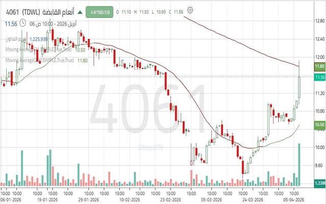 سهم "أنعام القابضة" يتحرك ضمن اتجاه هابط مع سيطرة القوة البيعية, اليوم الاثنين 6 أبريل 2026 12:04 مساءً