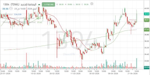 تحركات عرضية لسهم اليمامة للحديد وترقب لاختراقات فنية, اليوم الخميس 23 أبريل 2026 12:03 مساءً