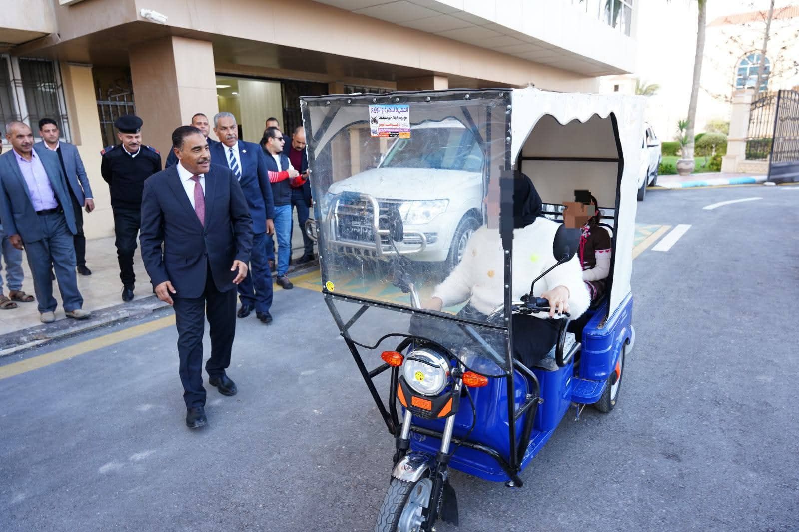 وتم تسليم الاسكوتر الكهربائي لها وابنتهـا أمام الديوان العام للمحافظة.