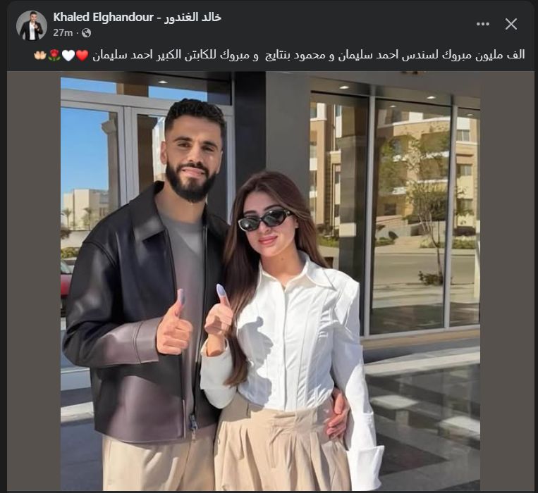 تحيا مصر، وكتب خالد الغندور عبر حسابه الرسمي"فيس بوك" الف مليون مبروك لسندس أحمد سليمان، و محمود بنتايج ومبروك للكابتن الكبير أحمد سليمان".