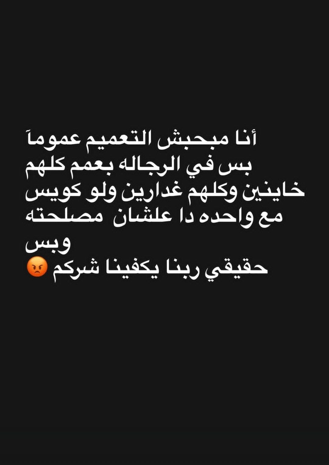 وفي خضم هذه التطورات، خرجت إيمان العاصي بتصريحات حادة أثارت تفاعلًا كبيرًا، حيث قالت عبر ستوري رصدها موقع تحيا مصر: «أنا مبحبش التعميم عموماً بس في الرجاله بعمم كلهم خاينين وكلهم غدارين ولو كويس مع واحدة دا علشان مصلحته وبس، حقيقي ربنا يكفينا شركم، بجد الرجاله مينفعش حد يثق فيهم أبداً، أعوذ بالله منكم»، تصريحات العاصي جاءت مباشرة بعد تصاعد أزمة لقاء الخميسي وعبد المنصف، واعتبرها كثيرون تعبيرًا صريحًا عن حالة غضب نسائية عامة، أكثر من كونها موجهة لشخص بعينه.
