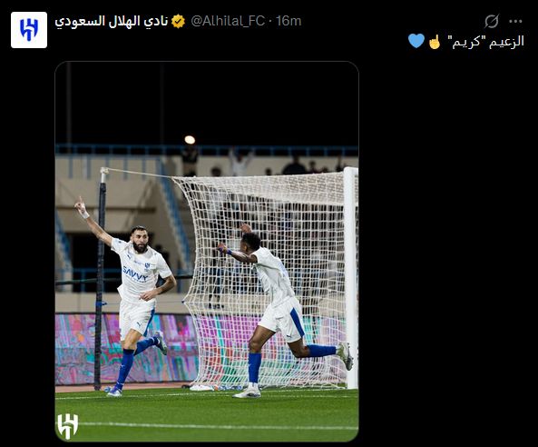وحرص نادي الهلال على الاحتفال بهذه اللحظة عبر حساباته الرسمية على وسائل التواصل الاجتماعي، حيث نشر النادي صورة لنجم الفريق مع تعليق مقتضب ولكنه معبر: "الزعيم كريم"، في إشارة إلى قدرات اللاعب وإسهامه السريع في خط هجوم الفريق منذ انتقاله من صفوف نادي الاتحاد السعودي إلى الزعيم. ولاقى هذا التعليق تفاعلًا واسعًا من جماهير الهلال، التي عبّرت عن سعادتها الكبيرة بتسجيل اللاعب الهدف الأول، مؤكدة توقعاتها بإضافة المزيد من الأهداف والحضور القوي مع الفريق في الدوري السعودي.