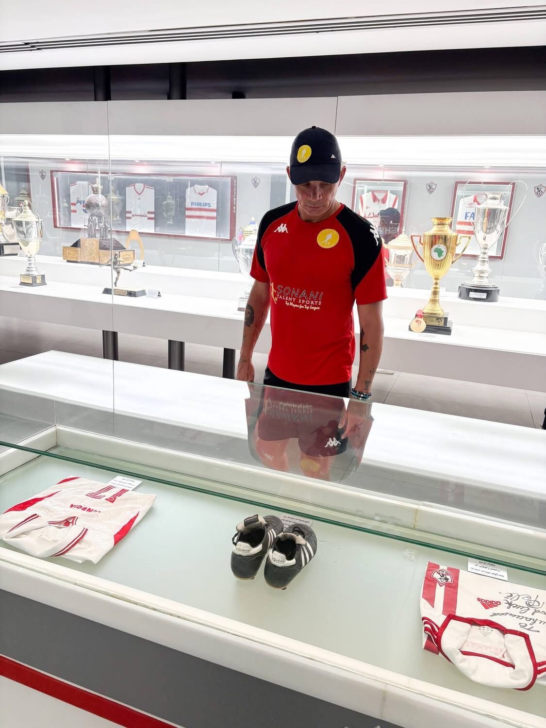 وشهدت الزيارة أجواءً مميزة، حيث حرص حازم إمام على تعريف الضيف بتاريخ نادي الزمالك العريق، من خلال جولة داخل متحف النادي، برفقة شكري حسن المدير الإداري لقطاع الناشئين.