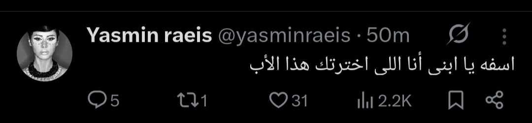 والمنشور الذي رصده موقع تحيا مصر جاء فيه: “آسفة يا ابني أنا اللي اخترتلك هذا الأب”، وهو ما اعتبره البعض رسالة مباشرة تحمل طابعًا شخصيًا أثار تفاعلًا واسعًا بين المتابعين.
