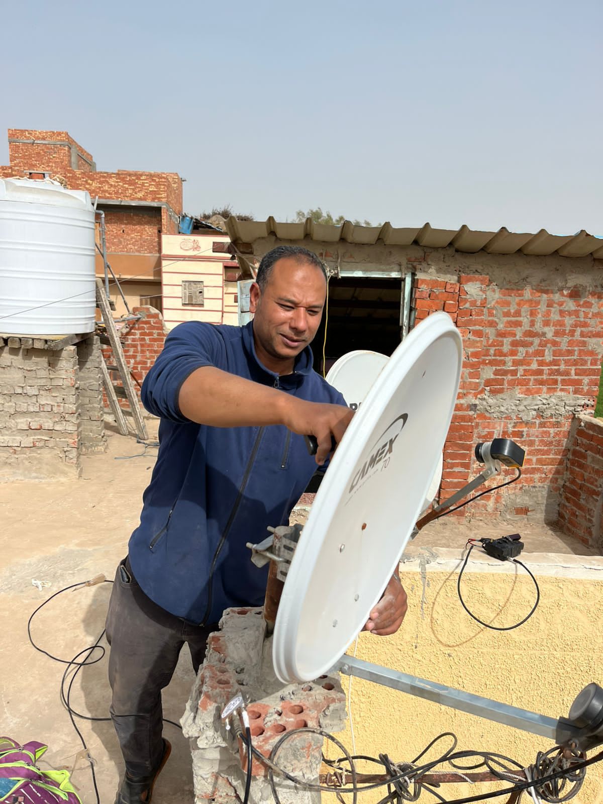يبدأ يومه مع أول ضوء يحمل أدواته البسيطة ويتنقل من منزل لآخر صاعدًا فوق الأسطح لإصلاح الأعطال التي تحرم الأهالي من متابعة قنواتهم وبين أسلاك متشابكة وأجهزة تحتاج إلى ضبط دقيق يقف رجب ثابتًا وكأنه ينسج خيطًا بين السماء وبيوت الناس.