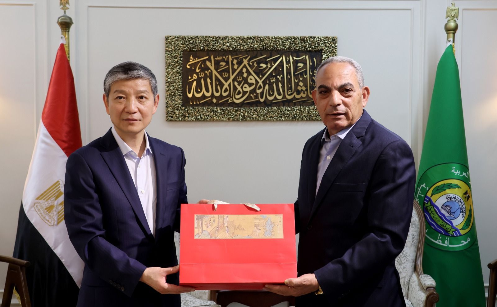 استقبل اللواء أ.ح نبيل حسب الله محافظ الإسماعيلية، صباح اليوم الإثنين، السيد لياو ليتشيانغ سفير جمهورية الصين الشعبية لدى مصر، والوفد المرافق له، لبحث سبل دعم وتعزيز التعاون المشترك بين الجانبين في عدد من المجالات الحيوية، في مقدمتها الاستثمار والتعليم والتدريب، إلى جانب مناقشة أبرز التحديات التي تواجه المستثمرين وطرح حلول عملية لها.