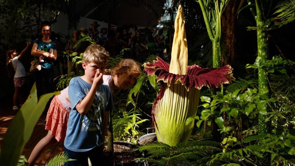 على الرغم من رائحتها الكريهة التي تشبه رائحة الجثث المتعفنة، تُعد زهرة «تيتانين وورتس» من أندر النباتات في العالم وأكثرها جذباً للزوار.