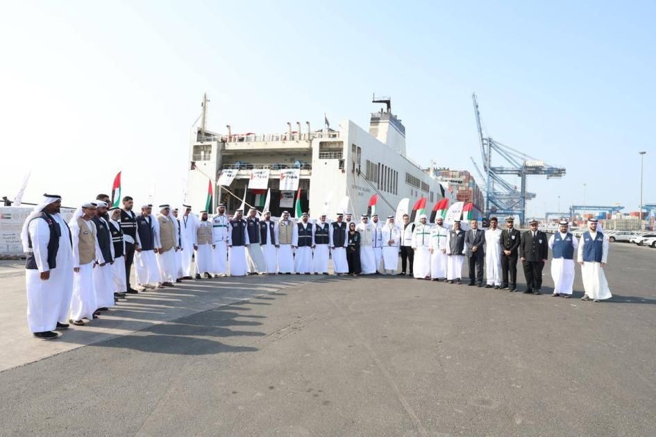 وقال أحمد المزروعي الأمين العام لهيئة الهلال الأحمر الإماراتي يبلغ إجمالي حمولة السفينة 7 آلاف و200 طن من المساعدات الغذائية والطبية والإغاثية المتنوعة.