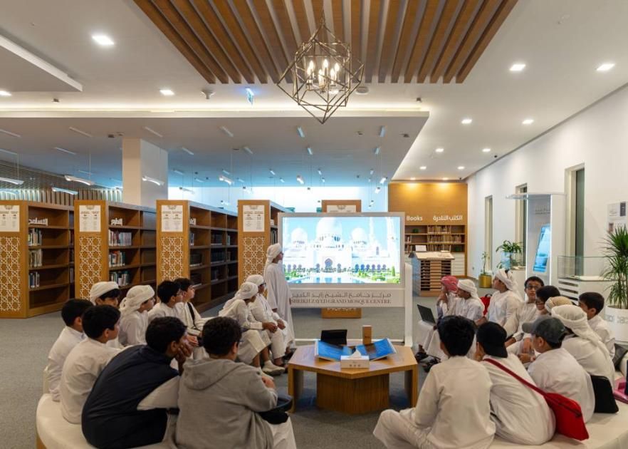 نظم مركز جامع الشيخ زايد الكبير ورشتين ثقافيتين في مكتبة الجامع، بمشاركة 45 طالباً وطالبة من مدارس إمارة أبوظبي، في إطار رسالته الرامية إلى ترسيخ القيم الثقافية والمعرفية، وتعزيز روح الإبداع والابتكار لدى النشء، وذلك بالتعاون مع وزارة التربية والتعليم، ضمن سلسلة من سبع ورش ثقافية يستضيفها المركز خلال شهري سبتمبر وأكتوبر 2025.