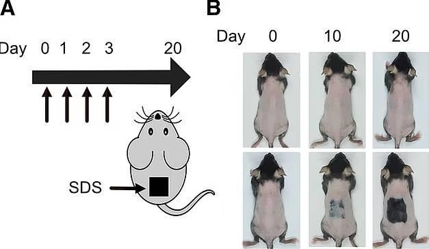 وأضاف: «في التجربة، تسببنا في إصابة فئران محلوقة من كلا الجنسين بالإكزيما عن طريق وضع مادة مهيجة تسمى ثنائي دوديسيل سلفات الصوديوم (SDS) على ظهورها. وبعد 11 يوماً، بدأت المناطق المعالجة من الجلد في إنبات شعر جديد من بصيلات يبلغ عرضها أقل من ملليمتر واحد».