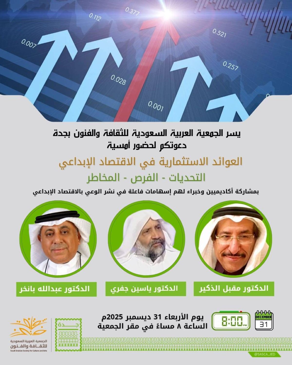 خبراء يستشرفون مستقبل "الاستثمار الإبداعي" في ندوة متخصصة بجدة, اليوم السبت 27 ديسمبر 2025 05:18 مساءً