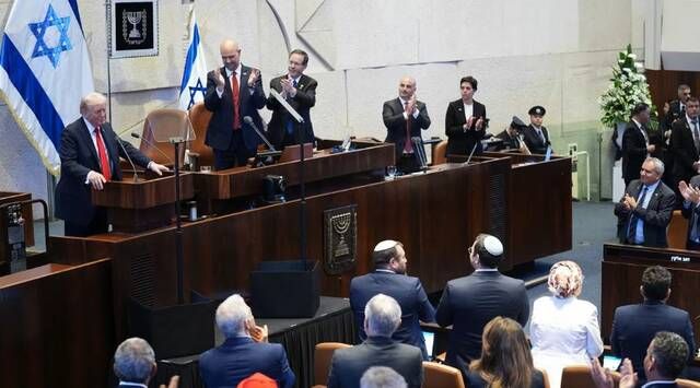 بدأ الرئيس الأمريكي دونالد ترامب خطابه أمام الكنيست بعد الاستماع إلى تصريحات مطولة من القادة الإسرائيليين.