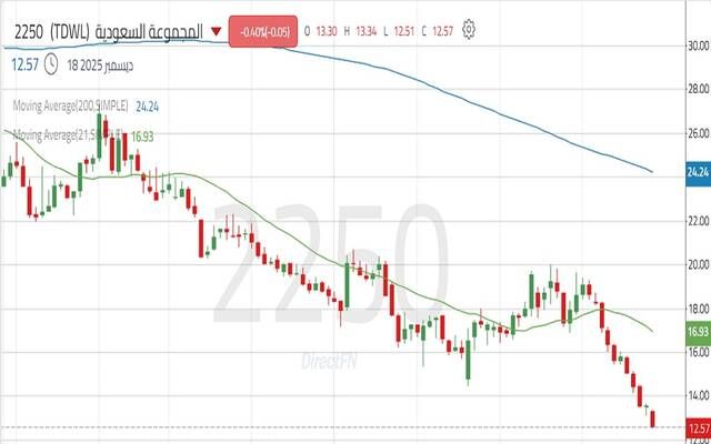 مباشر للأبحاث: يتعرض سهم المجموعة السعودية لتراجع حاد مصحوب بغياب واضح للقوة الشرائية، حيث يختبر السهم حالياً منطقة طلب مهمة على الإطار الزمني الأسبوعي عند 12.65 ريال - 11.30 ريال.