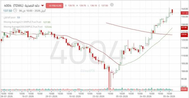 سهم "دله الصحية": تحسن فني مع اختبار حاجز نفسي هام, اليوم الاثنين 6 أبريل 2026 01:17 مساءً