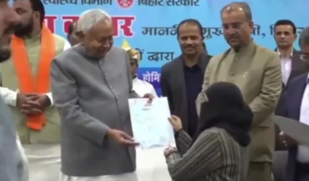 في مشهد يعكس عمق العنصرية المتفشية في الهند ضد المسلمين، أثار تصرف رئيس وزراء ولاية بيهار الهندية، نيتيش كومار، موجة غضب وانتقادات حادة، بعد أن أقدم على نزع النقاب من طبيبة مسلمة "قسراً" خلال حفل رسمي لتسليم خطابات التعيين لأطباء جدد.