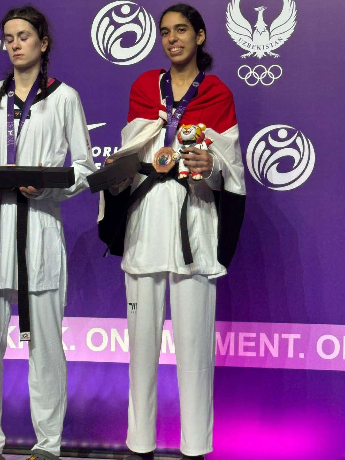 حلا هاني تضيف الميدالية البرونزية الثانية لمصر في بطولة العالم للتايكوندو للشباب بأوزبكستان