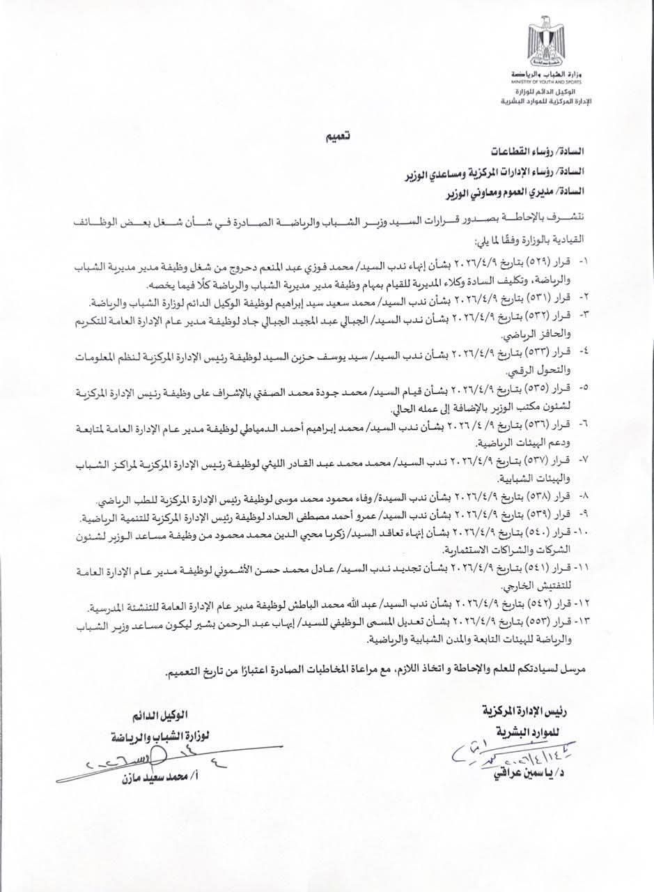 وتأتي قرارات وزارة الشباب والرياضة ضمن توجه شامل لتحسين الأداء المؤسسي وتعزيز القدرة على مواكبة التحديات الحديثة، خاصة في ظل التوسع في التحول الرقمي داخل المؤسسات الحكومية.