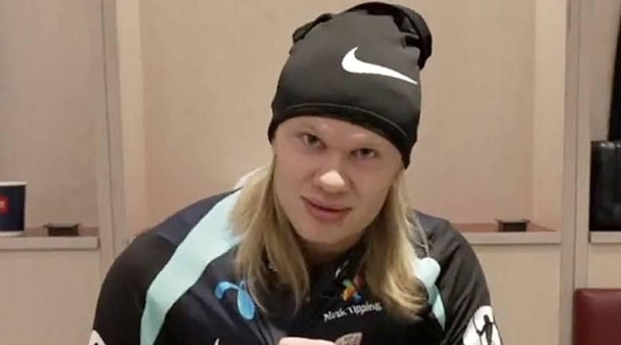 وقرر هالاند استغلال الفرصة لإظهار الجانب المرح من شخصيته وبدأها بالترحيب بزملائه بعبارة «هيا بنا» ثم مازح زميله أندرياس شيليدرب لاعب بنفيكا البرتغالي أثناء تمرير الكرة بين اللاعبين على شكل دائرة توسطها زميله، وقال له: «يسمح لك شيليدرب بالوقوف على أطراف أصابعك، هذا مسموح».