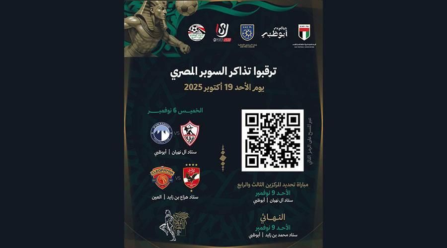 أعلنت رابطة المحترفين الإماراتية عن طرح تذاكر بطولة السوبر المصري لكرة القدم يوم الأحد 19 أكتوبر الحالي لتكون في متناول المشجعين.