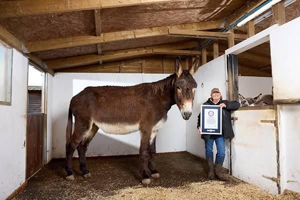 وأعلنت «غينيس» رسمياً أن «ديناميك ديريك» أصبح أطول حمار حي في العالم، بطول 167 سنتيمتراً من الحافر إلى الكتفين، وهو ما يجعله أطول بكثير من متوسط حجم الحمير المعتاد. أما «بامبو»، فسجل رقماً قياسياً أيضاً، بأطول أذنين في العالم، بلغ طولهما حوالي 35 سنتيمتراً.