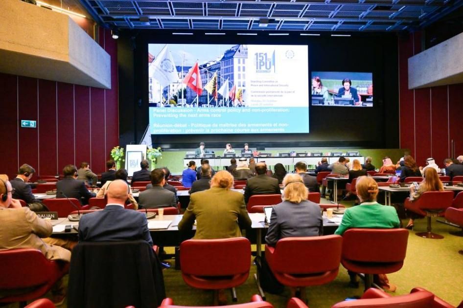 كما أكد أن منع سباق التسلح مسؤولية تتطلب تعاون جميع الدول والبرلمانات، حيث إن البرلمانات صوت الشعوب والضمانة الأساسية لحفظ السلم والأمن الدوليين، ولا بدّ من الاستثمار في الأجيال القادمة لبناء ثقافة السلام والتعايش الإنساني».