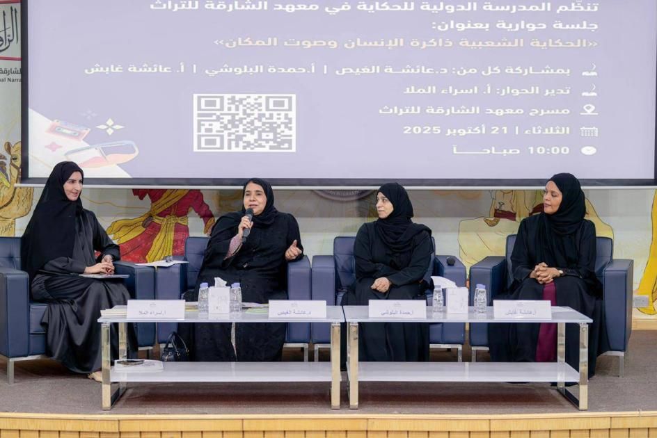 نظم معهد الشارقة للتراث، صباح الثلاثاء، جلسة بعنوان «الحكاية الشعبية ذاكرة الإنسان وصوت المكان»، بمشاركة د.عائشة الغيص، وحمدة البلوشي، وعائشة غابش، مدير إدارة الفعاليات والأنشطة في المعهد. أدارت الجلسة إسراء الملا، مدير المدرسة الدولية للحكاية التابعة للمعهد، وذلك بحضور جمع من الأكاديميين والمهتمين بالتراث والثقافة.