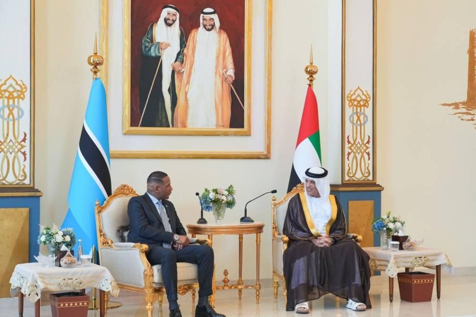 ورحّب صاحب السمو حاكم رأس الخيمة برئيس بوتسوانا، وبحث معه سبل تعزيز العلاقات الثنائية، مشيداً بالحرص المتبادل على ترسيخ التعاون في شتى المجالات ذات الاهتمام المشترك، بما يخدم الأهداف التنموية.
