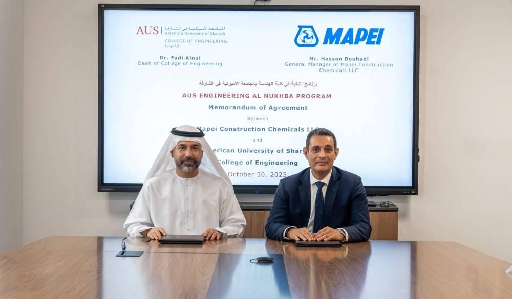وقّعت الجامعة الأمريكية في الشارقة وشركة «مابي»، لمنتجات كيماويات البناء والمعروفة بالابتكار والاستدامة، مذكرة تفاهم ضمن برنامج النخبة في كلية الهندسة في الجامعة.