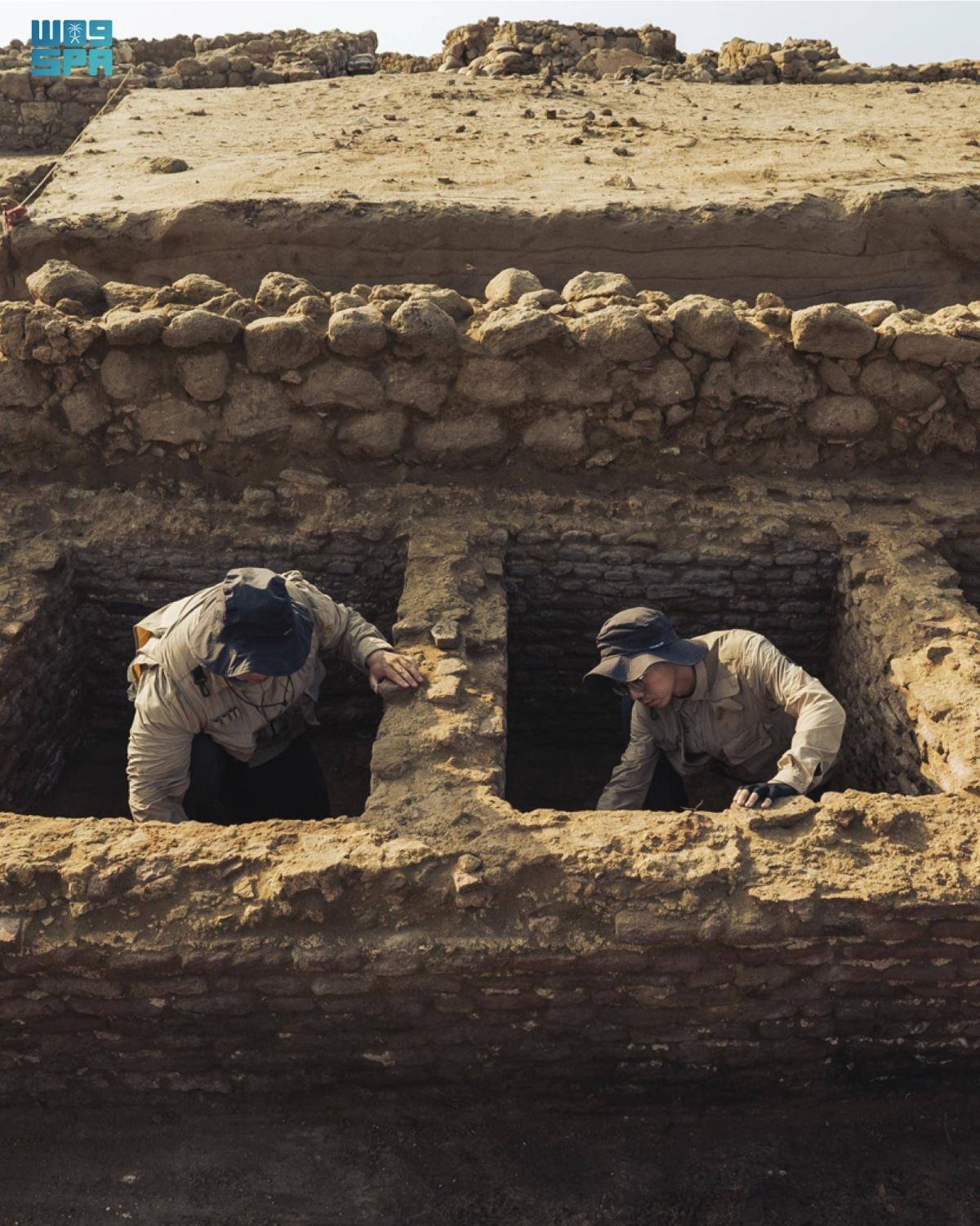 وكشفت أعمال التنقيب خلال الموسم عن امتدادات معمارية في عدد من مربعات الحفر ضمن شبكة التنقيب بالموقع، شملت توثيق وحدات سكنية وخدمية وتخزينية، ومواقد فخارية تعكس أنشطة الحياة المعيشية، إلى جانب الكشف عن سور يحيط بالموقع ويمتد في الجهات الجنوبية والشمالية والغربية، بما أتاح قراءة أوضح لتنظيم الموقع وحدوده العمرانية.